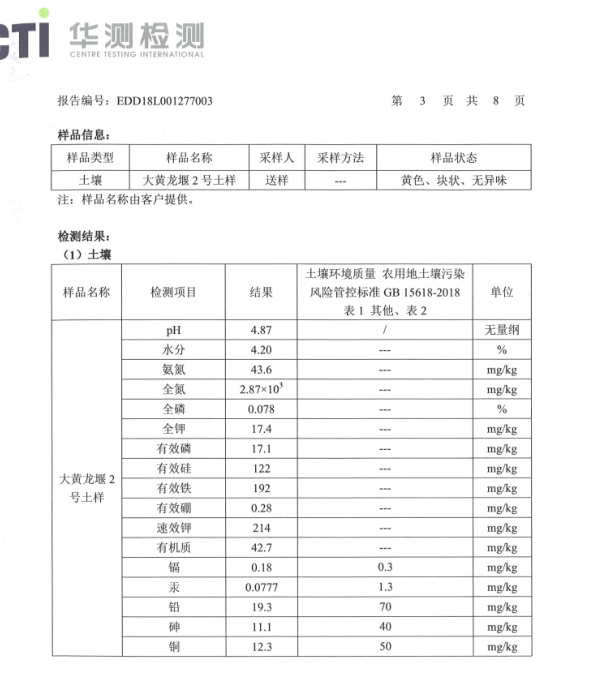 丨黃龍堰土壤檢測報告