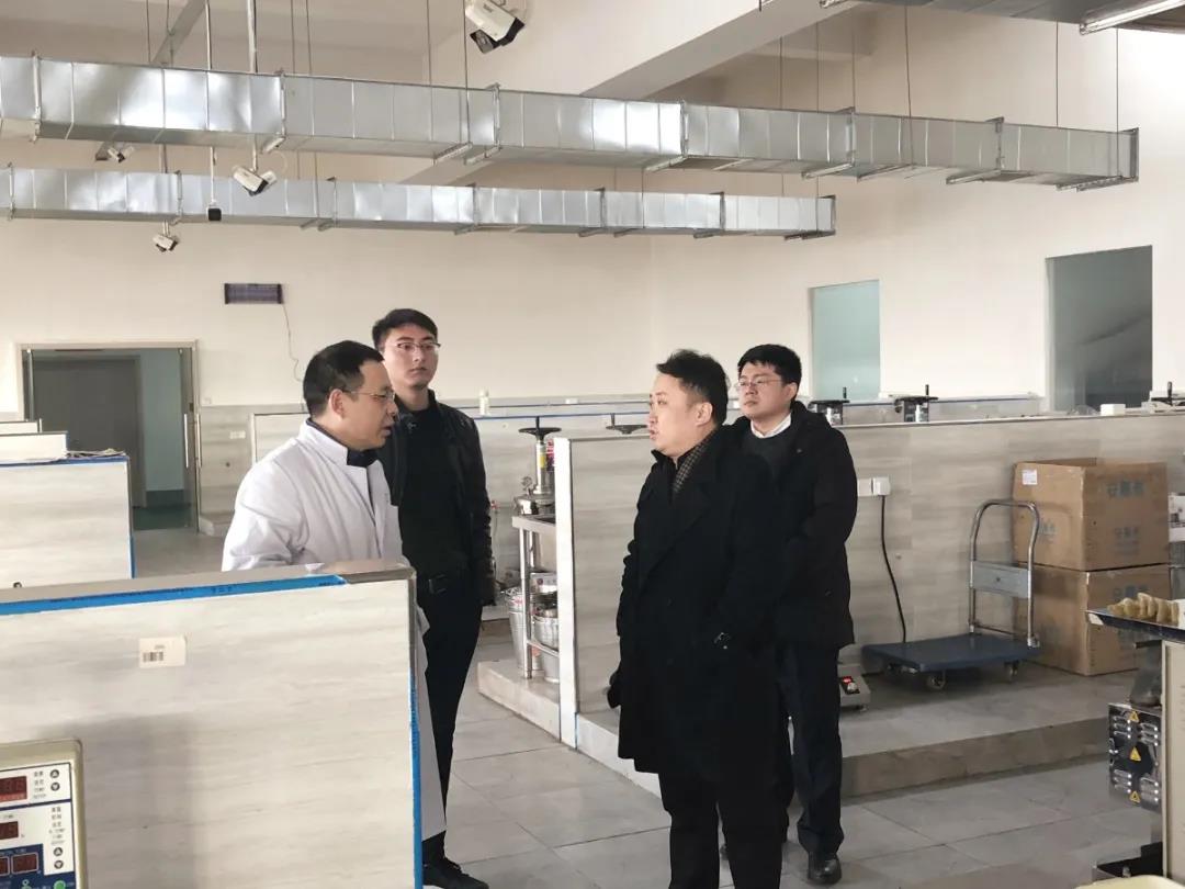 丨神藥公司總經(jīng)理薛超(右二)一行在正仁醫(yī)藥負(fù)責(zé)人的陪同下考察中藥代煎中心。