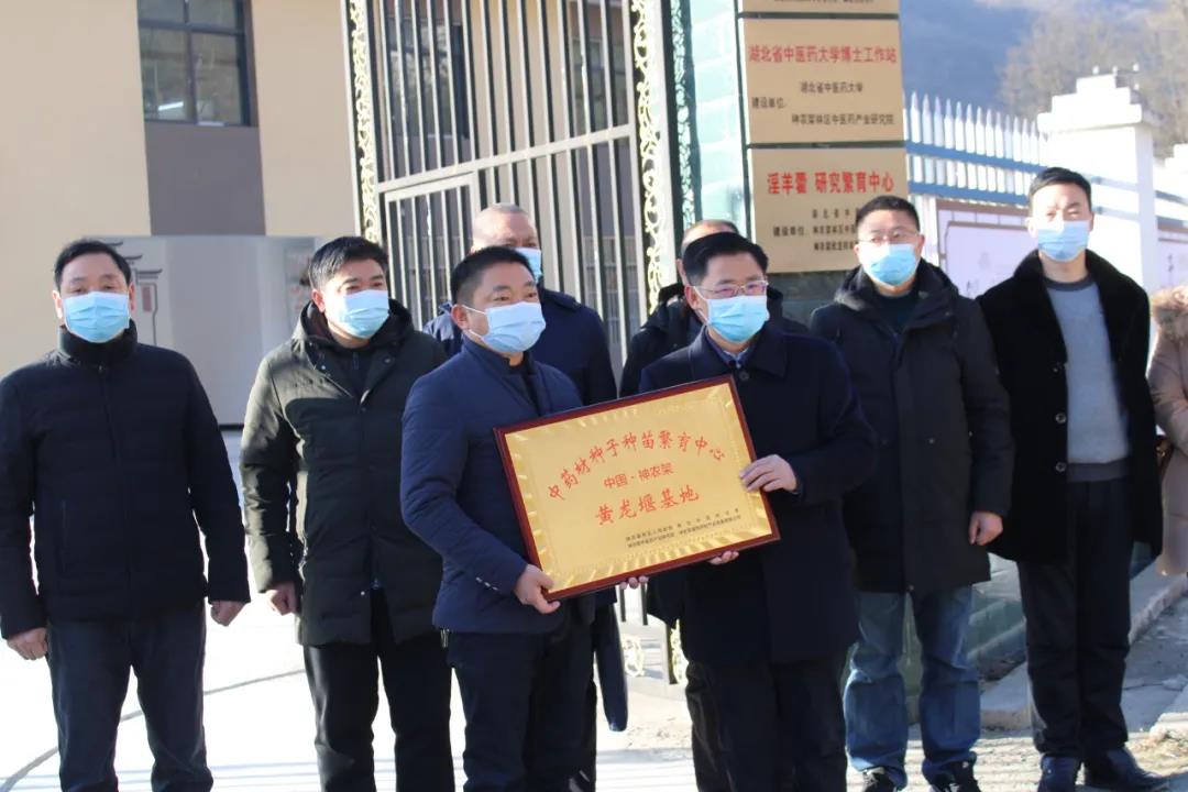 丨神農(nóng)架林區(qū)黨委副書記、政法委書記羅棟梁(右)代表神農(nóng)架林區(qū)政府為神農(nóng)架道地藥材公司黃龍堰基地授牌。