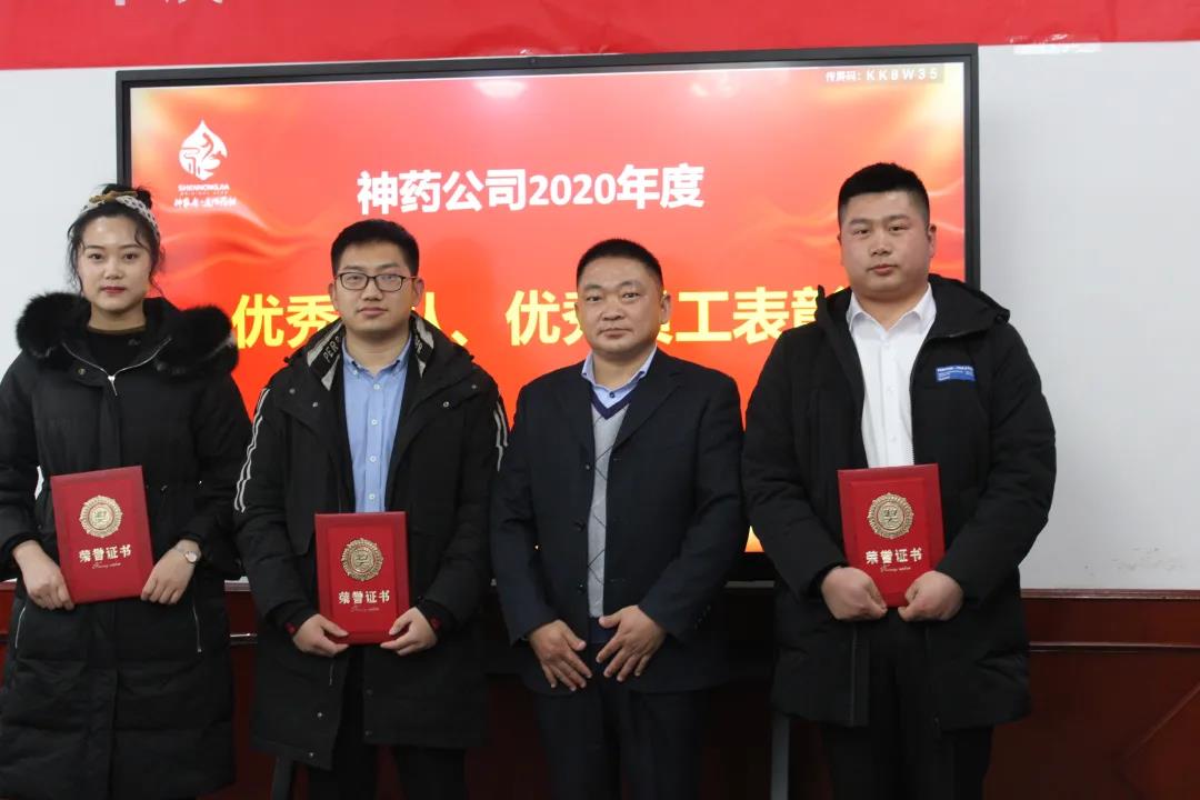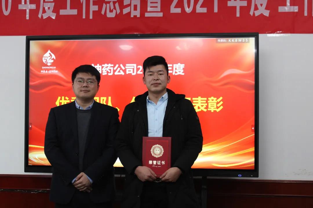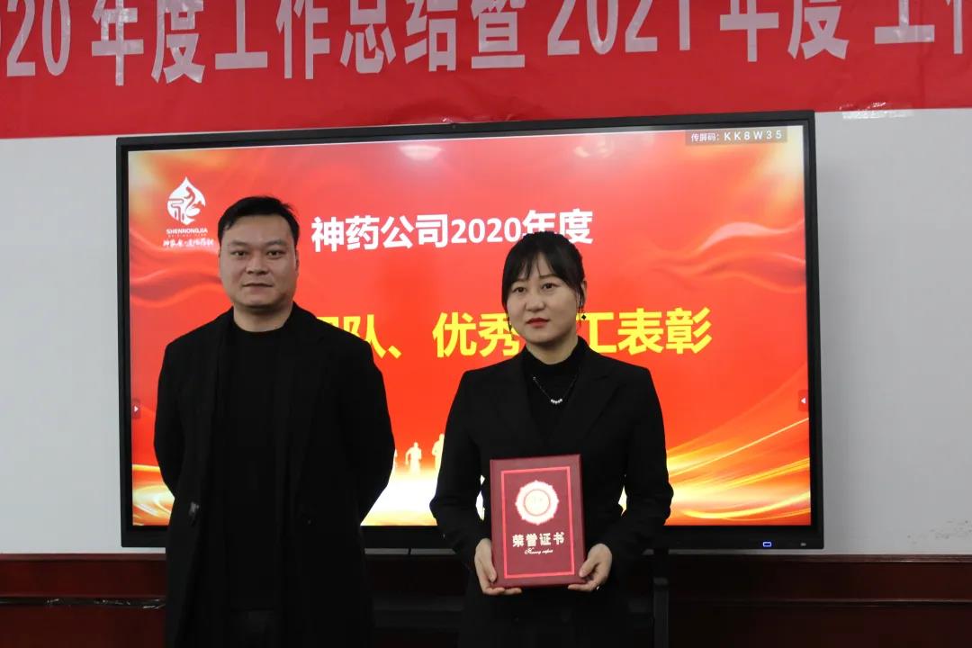 因在2020年度工作中整個(gè)團(tuán)隊(duì)不怕吃苦、積極進(jìn)取和優(yōu)異表現(xiàn)獲此殊榮,并由神農(nóng)架道地藥材公司總經(jīng)理薛超先生(右一)為其頒獎(jiǎng)。