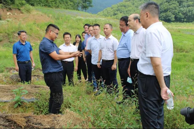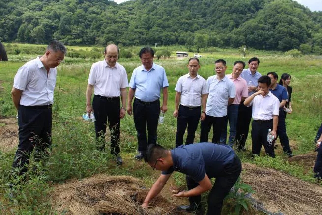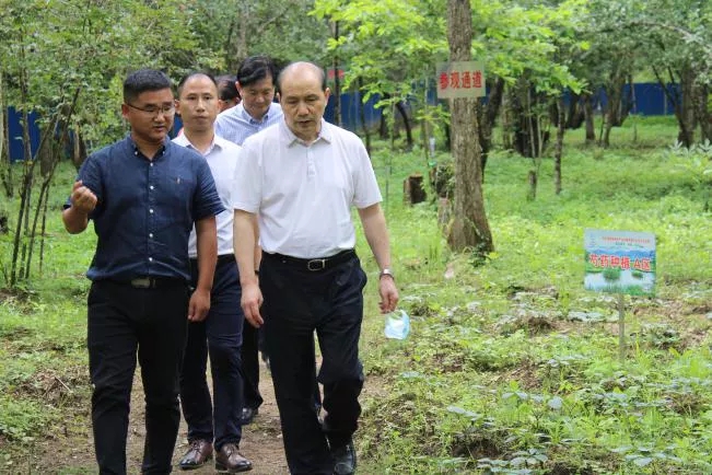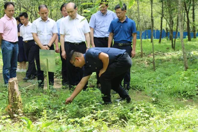 ▲省領導一行參觀神藥林下種植中藥材示范園“神農藥園”,了解林下種植優(yōu)勢、后期林下種植規(guī)劃。神藥公司技術經理張俊介紹神藥公司致力打造黃龍堰生態(tài)示范園,并建設林下種植示范園“神農藥園”,進行試驗性種苗區(qū)種植及瀕危名貴野生品種的訓育。