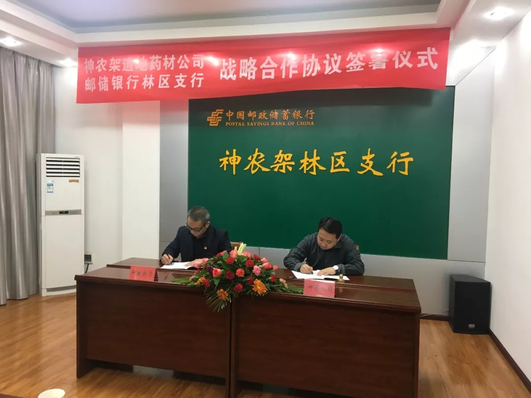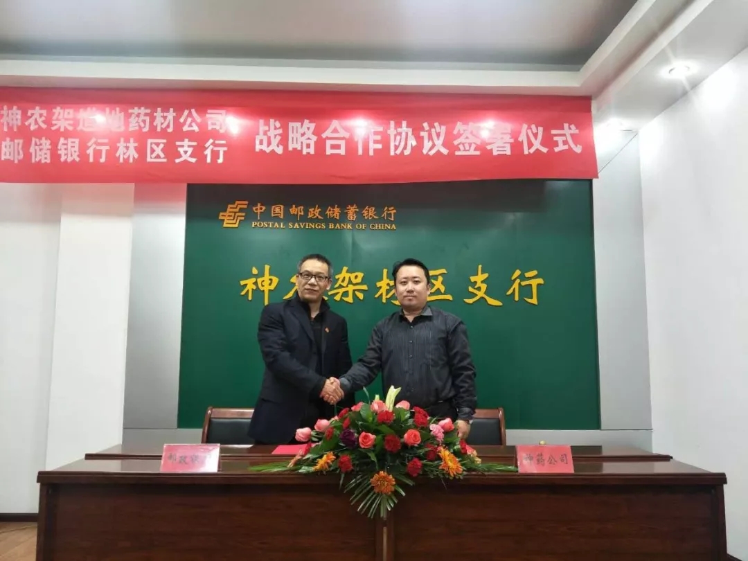 神農(nóng)架道地藥材產(chǎn)業(yè)發(fā)展有限公司與中國(guó)郵政儲(chǔ)蓄銀行神農(nóng)林區(qū)支行建立長(zhǎng)期戰(zhàn)略合作關(guān)系。