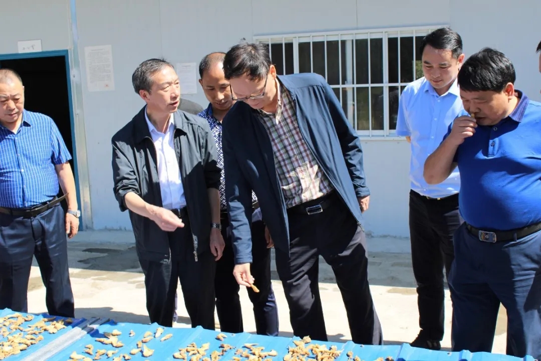 ▲領(lǐng)導(dǎo)們查看黃精藥材