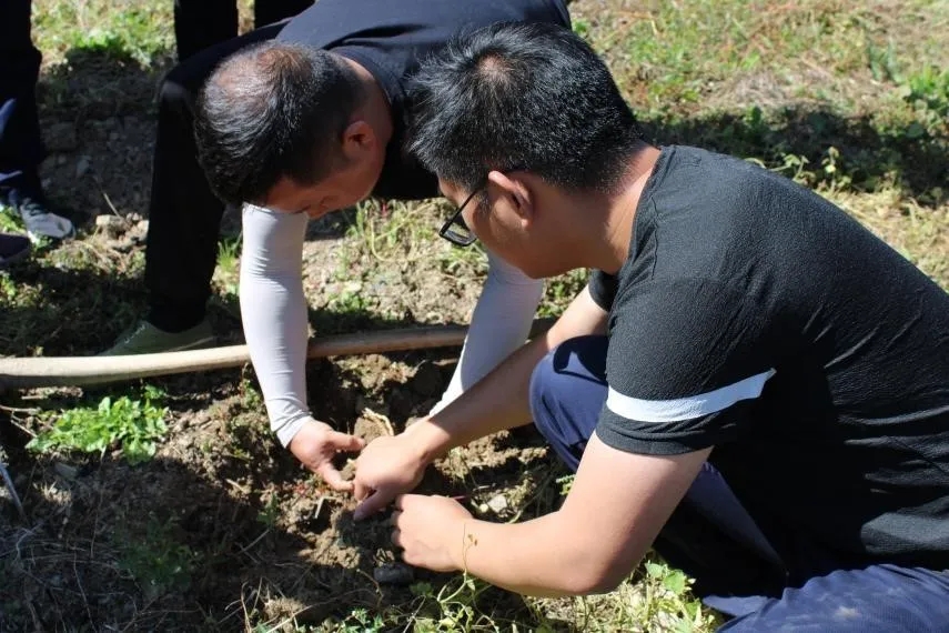 ▲領(lǐng)導(dǎo)們對公司天麻育種基地,黨參、黃精、貝母、天麻種植區(qū)進(jìn)行了現(xiàn)場采挖查看。