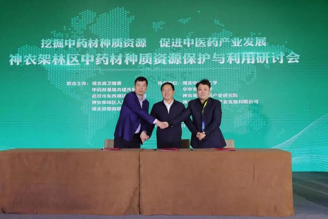 11月12日,神農(nóng)架中藥材種質(zhì)資源保護(hù)與利用研討會在武漢洲際酒店國際會議中心舉行。研討會上,神農(nóng)架林區(qū)黨委副書記、政府區(qū)長劉啟俊還代表林區(qū)人民政府與神農(nóng)架道地藥材產(chǎn)業(yè)發(fā)展有限公司、武漢九州通九信中藥集團(tuán)簽訂三方框架合作協(xié)議。
